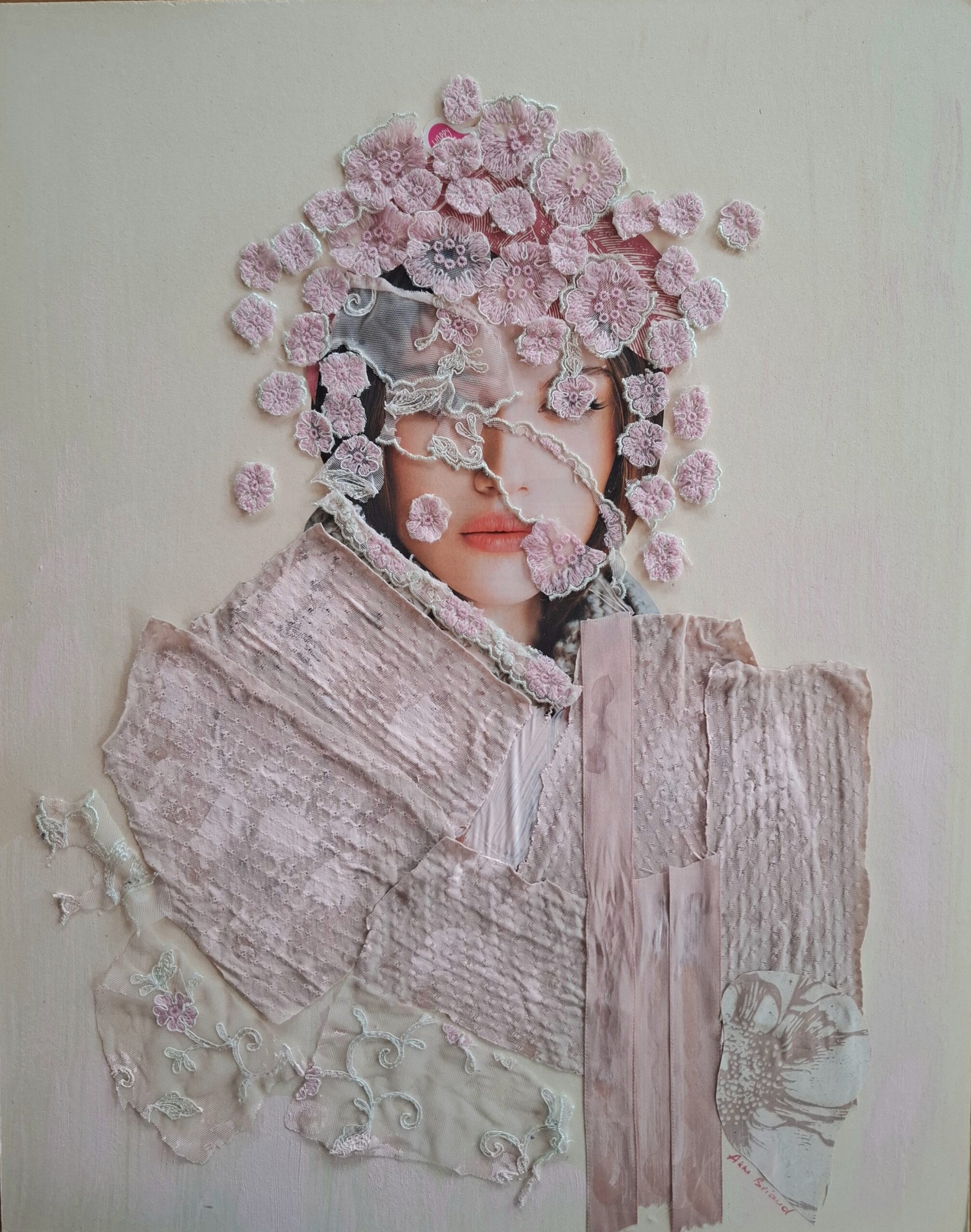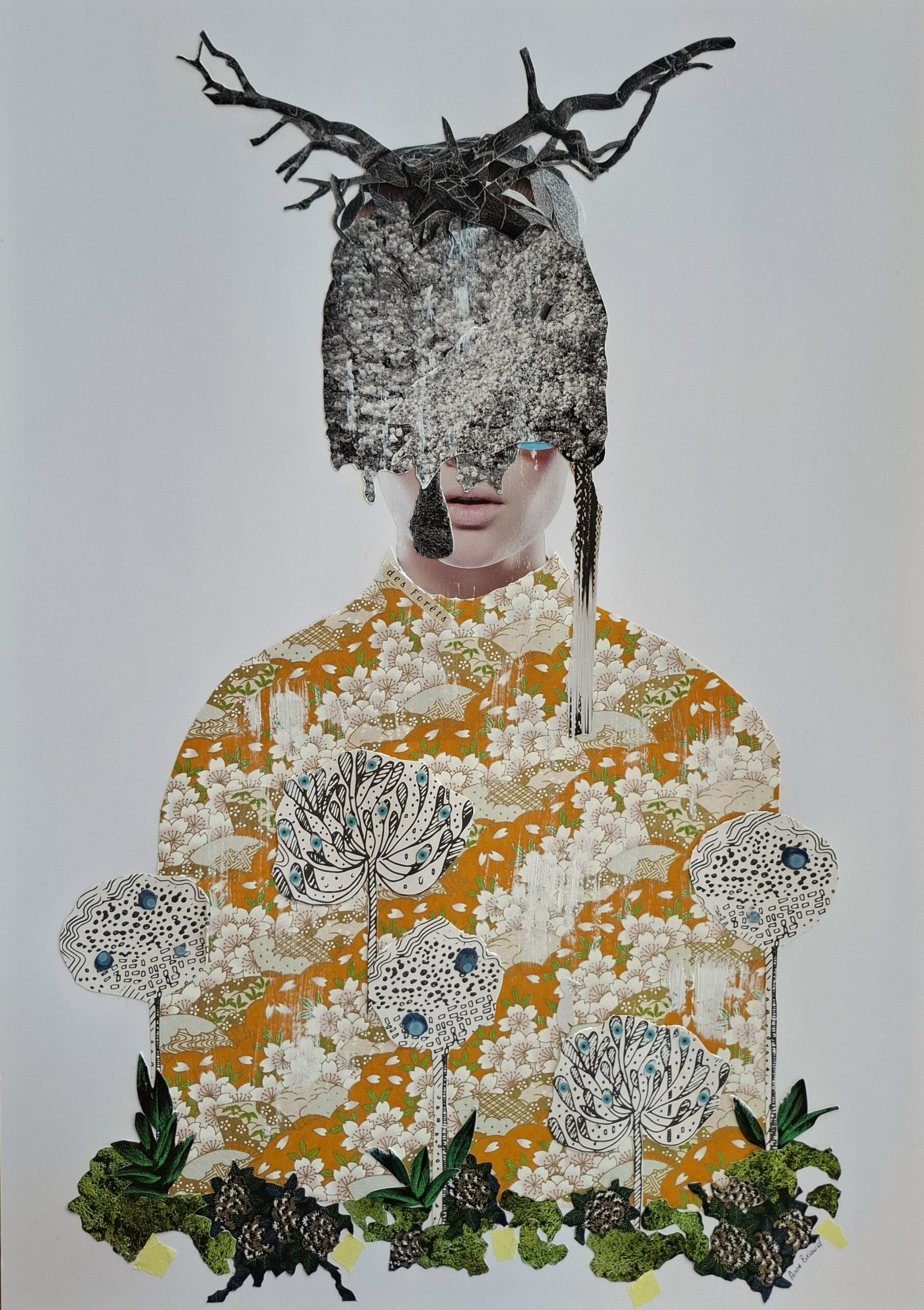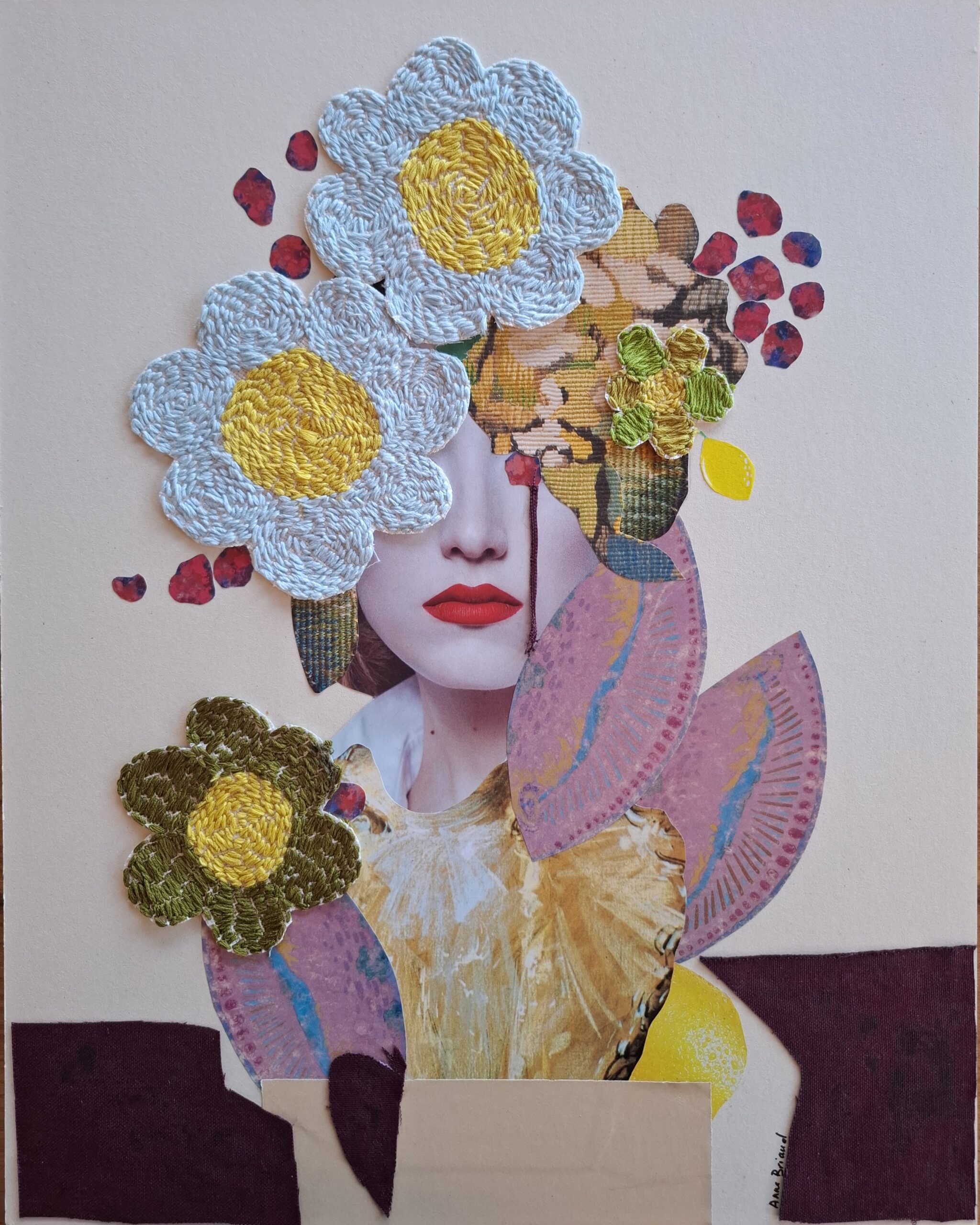 Mon art reste celui du collage, mais je travaille aussi la technique mixte (dessin, broderie…).