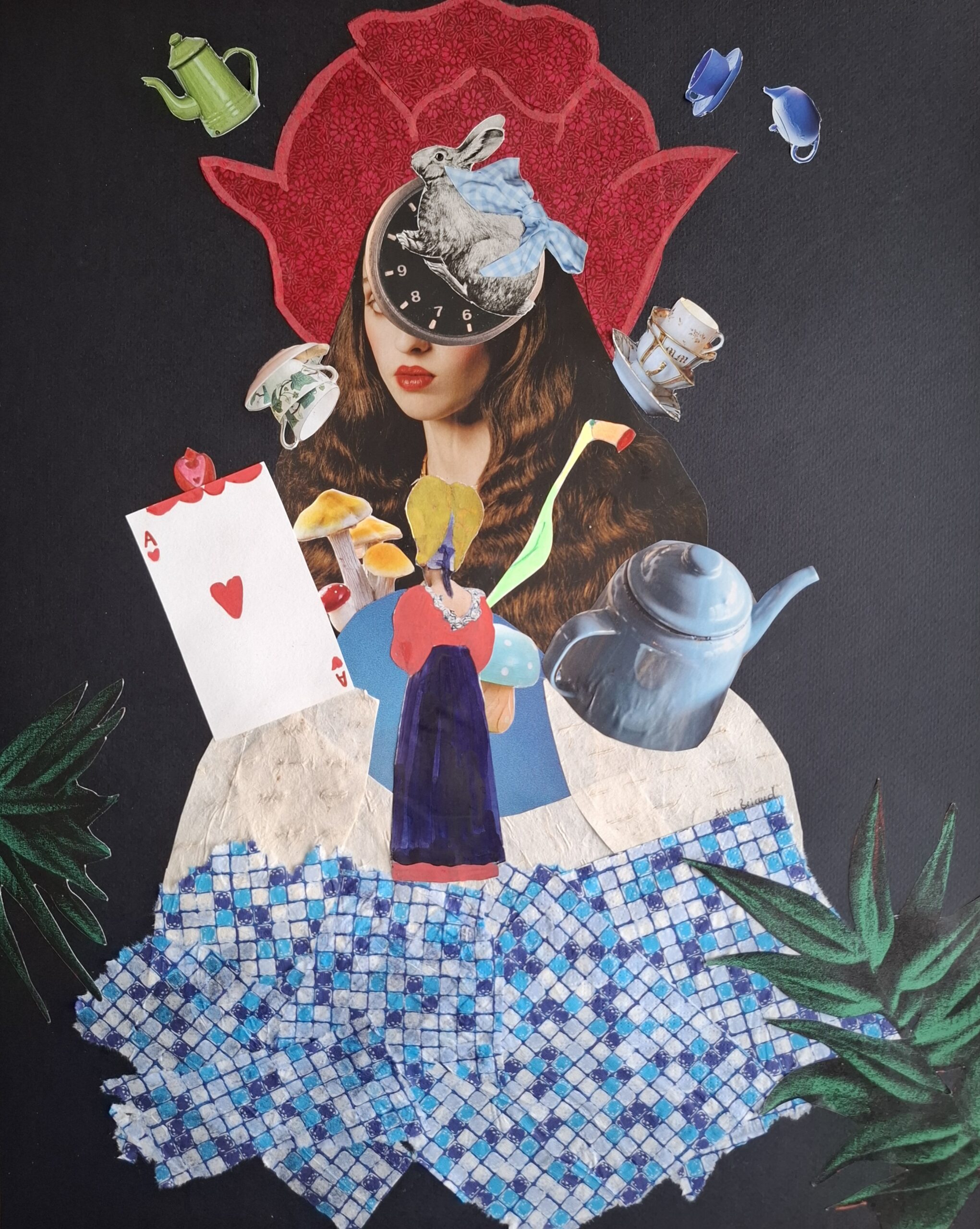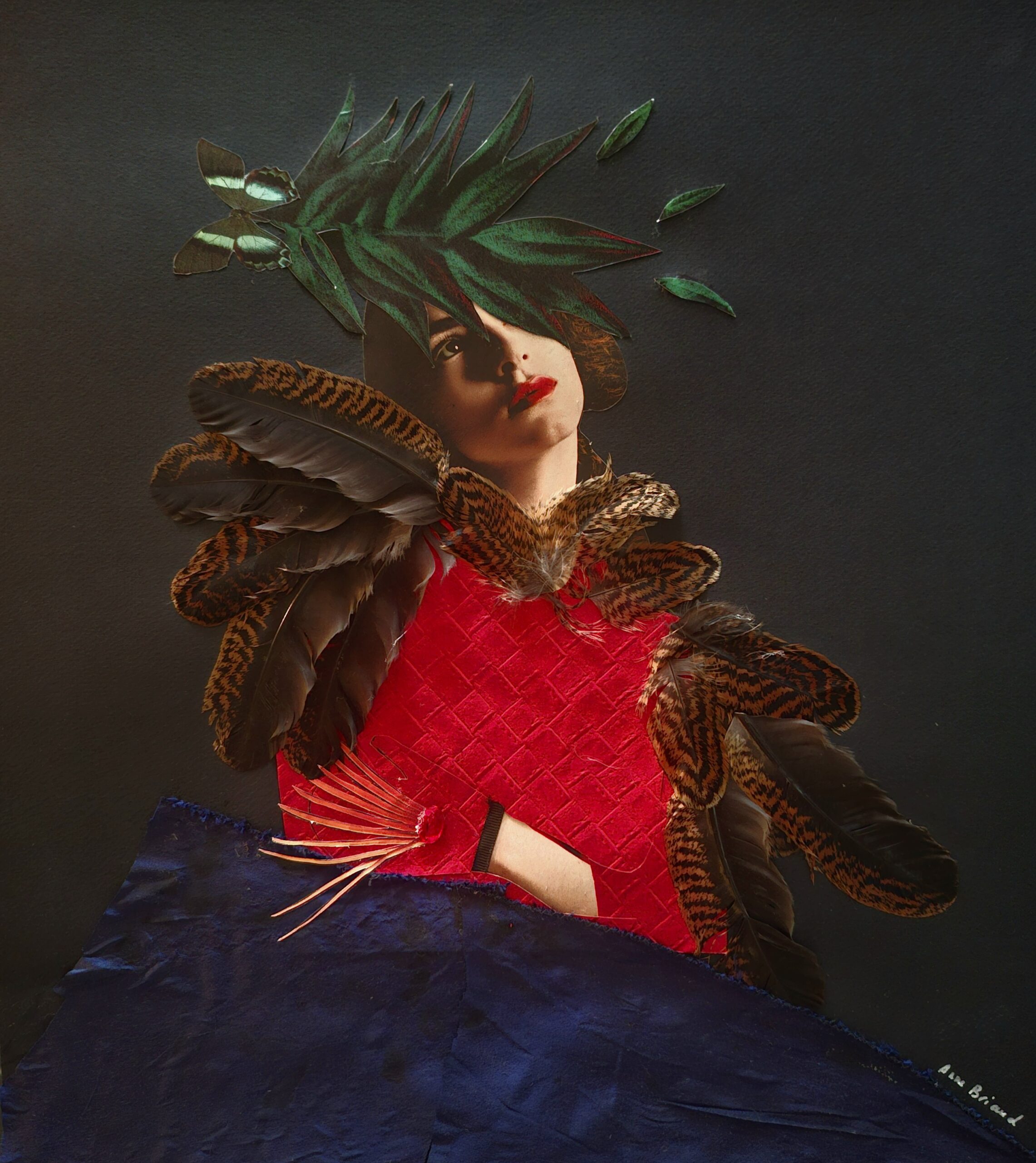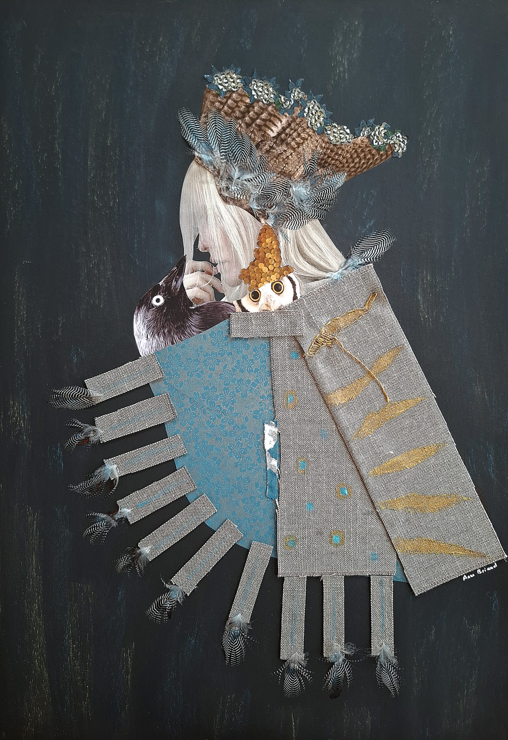 Mon art reste celui du collage, mais je travaille aussi la technique mixte (dessin, broderie…).
